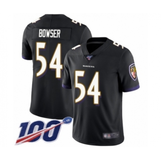 >Men's Baltimore Ravens #54 Tyus Bowser Black Alternate Vapor Untouchable Limited Player 100th Season Football Jersey