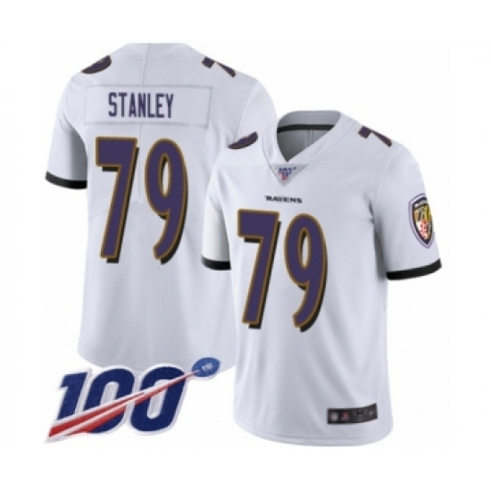 >Men's Baltimore Ravens #79 Ronnie Stanley White Vapor Untouchable Limited Player 100th Season Football Jersey