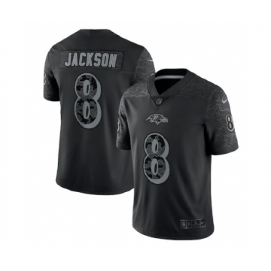 Men's Baltimore Ravens #8 Lamar Jackson Black Reflective Limited Stitched Football Jersey