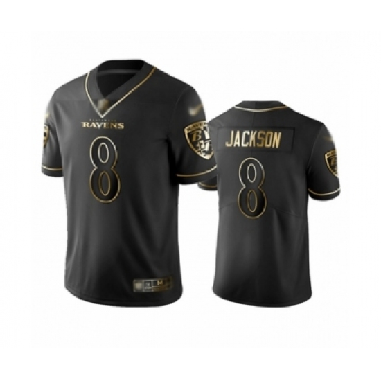 Men's Baltimore Ravens #8 Lamar Jackson Limited Black Golden Edition Football Jersey