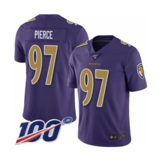 Men's Baltimore Ravens #97 Michael Pierce Purple Team Color Vapor Untouchable Limited Player 100th Season Football Jersey