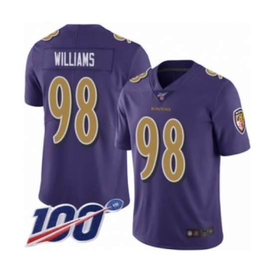 Men's Baltimore Ravens #98 Brandon Williams Limited Purple Rush Vapor Untouchable 100th Season Football Jersey
