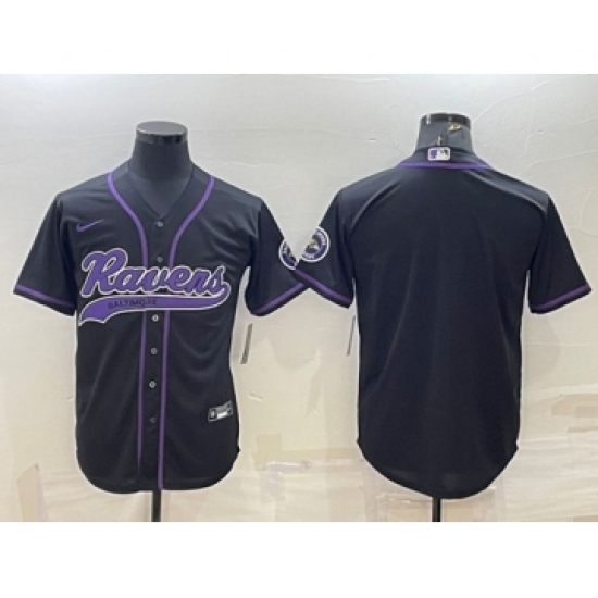 Men's Baltimore Ravens Blank Black With Patch Cool Base Stitched Baseball Jersey