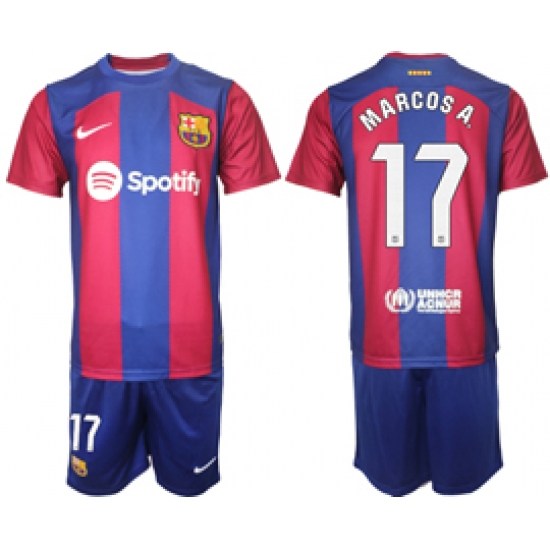 Men's Barcelona #17 Marcosa. Blue Red 2023-24 Home Soccer Jersey