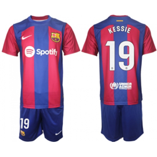 Men's Barcelona #19 Kessie Blue Red 2023-24 Home Soccer Jersey