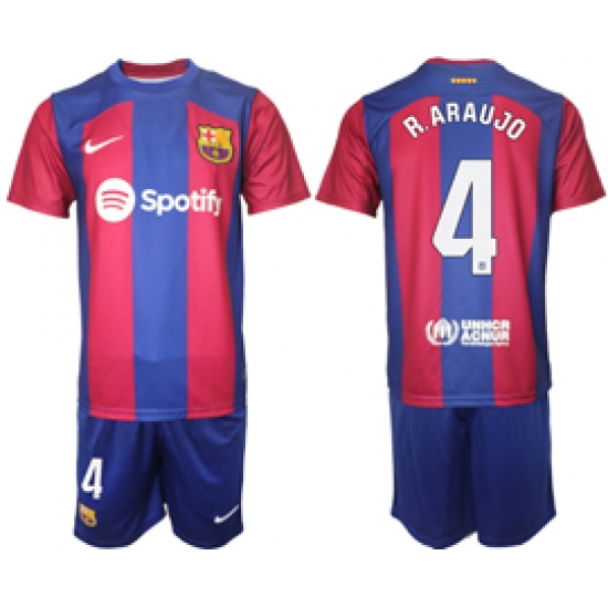 Men's Barcelona #4 R.Araujo Blue Red 2023-24 Home Soccer Jersey