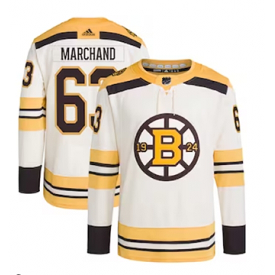 Men's Boston Bruins #63 Brad Marchand Black 100th Anniversary With C Stitched Hockey Jersey