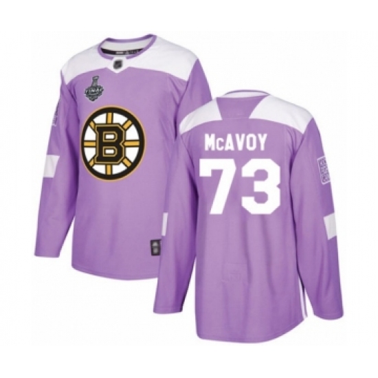 >Men's Boston Bruins #73 Charlie McAvoy Authentic Purple Fights Cancer Practice 2019 Stanley Cup Final Bound Hockey Jersey