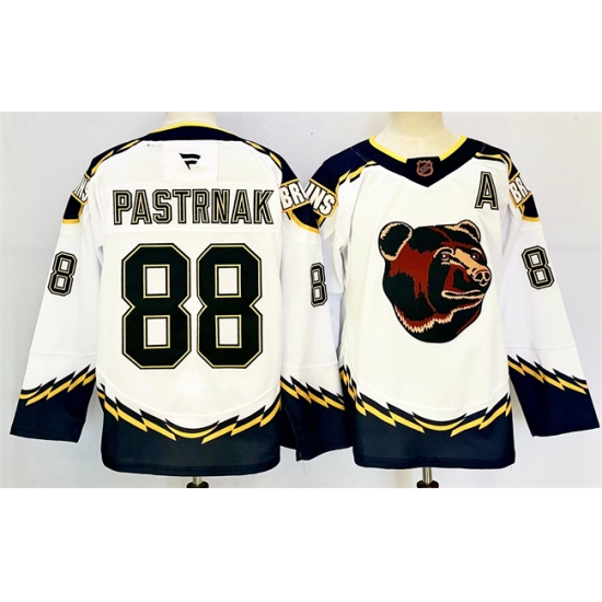 Men's Boston Bruins #88 David Pastrnak White 2024-25 With A Reverse Retro Home Stitched Hockey Jersey