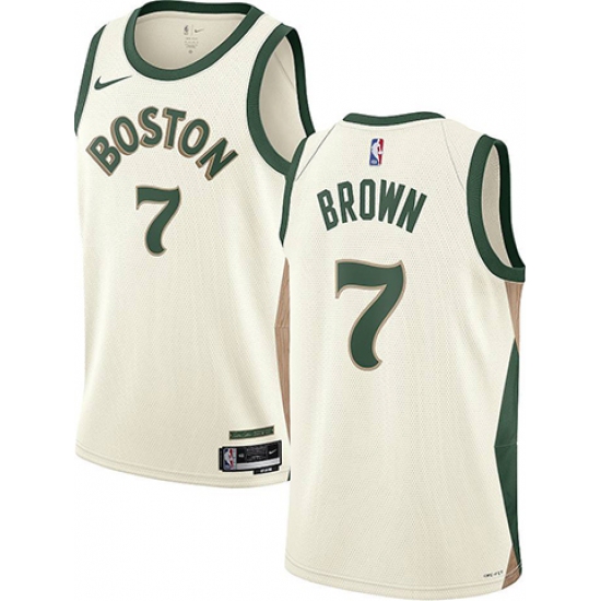 >Men's Boston Celtics #7 Jaylen Brown White Stitched Baseball Jersey