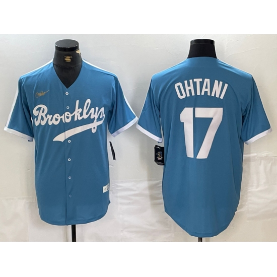 >Men's Brooklyn Dodgers #17 Shohei Ohtani Light Blue Cooperstown Collection Cool Base Jersey