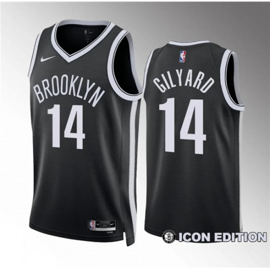 Men's Brooklyn Nets #14 Jacob Gilyard Black Draft Icon Edition Stitched Basketball Jersey