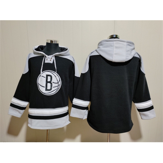 Men's Brooklyn Nets Blank Black Lace-Up Pullover Hoodie