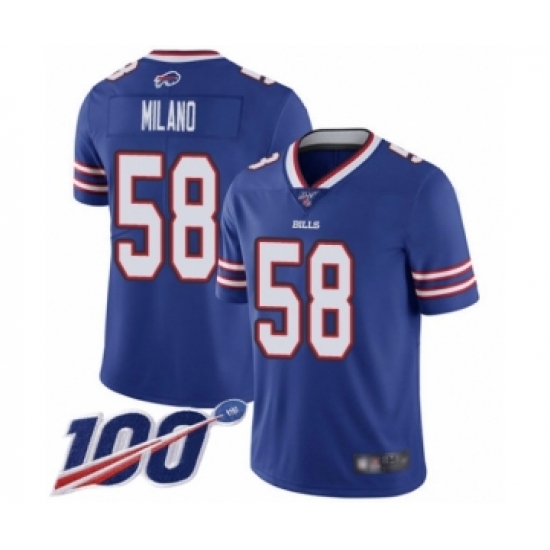Men's Buffalo Bills #58 Matt Milano Royal Blue Team Color Vapor Untouchable Limited Player 100th Season Football Jersey