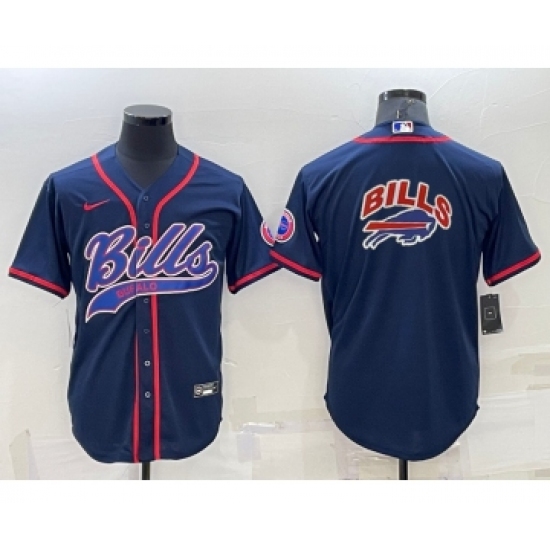 >Men's Buffalo Bills Royal Team Big Logo With Patch Cool Base Stitched Baseball Jersey