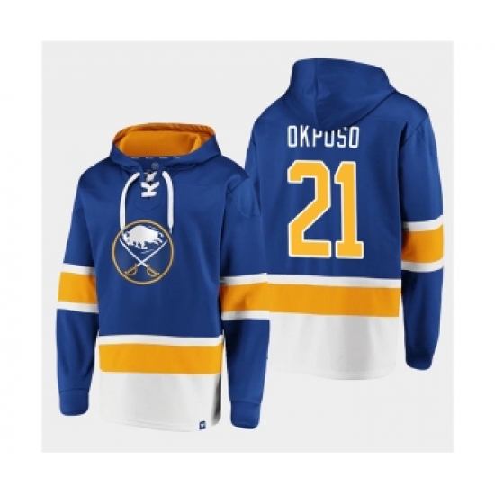 >Men's Buffalo Sabres #21 Kyle Okposo Royal Ageless Must-Have Lace-Up Pullover Hoodie