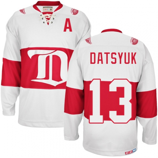 Men's CCM Detroit Red Wings #13 Pavel Datsyuk Premier White Winter Classic Throwback NHL Jersey