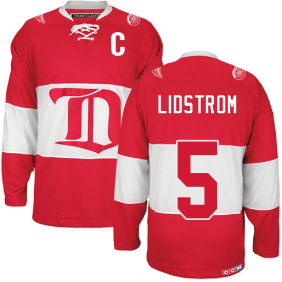 Men's CCM Detroit Red Wings #5 Nicklas Lidstrom Authentic Red Winter Classic Throwback NHL Jersey