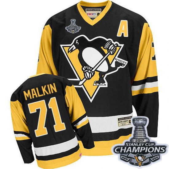 Men's CCM Pittsburgh Penguins #71 Evgeni Malkin Premier Black Throwback 2017 Stanley Cup Champions NHL Jersey