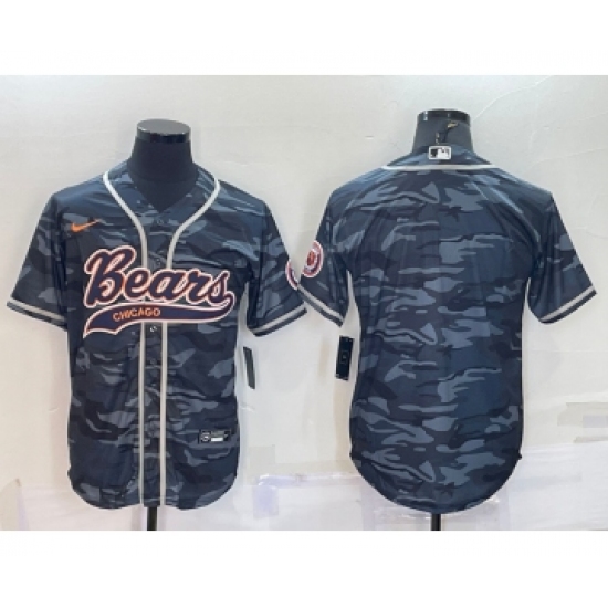 Men's Chicago Bears Blank Grey Camo With Patch Cool Base Stitched Baseball Jersey