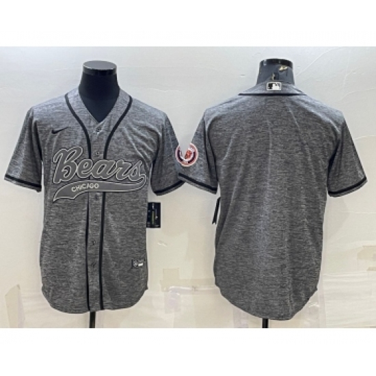 >Men's Chicago Bears Blank Grey With Patch Cool Base Stitched Baseball Jersey