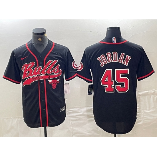 >Men's Chicago Bulls #45 Michael Jordan Black Cool Base Stitched Baseball Jersey