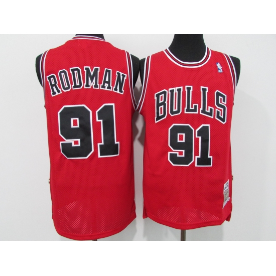 Men's Chicago Bulls #91 Dennis Rodman Red 1997-98 Throwback Stitched Basketball Jersey