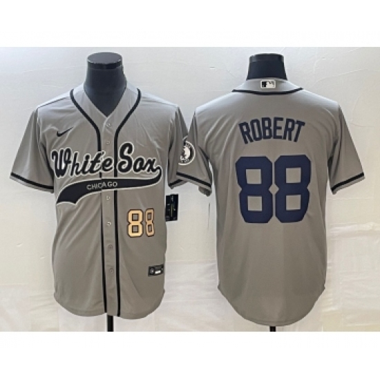 Men's Chicago White Sox #88 Luis Robert Number Grey Cool Base Stitched Baseball Jersey