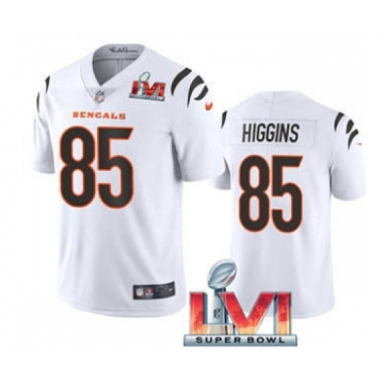 Men's Cincinnati Bengals #85 Tee Higgins White 2022 Super Bowl LVI Vapor Limited Stitched Jersey