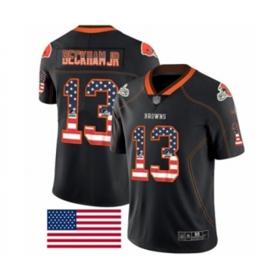 Men's Cleveland Browns #13 Odell Beckham Jr. Limited Black Rush USA Flag Football Jersey