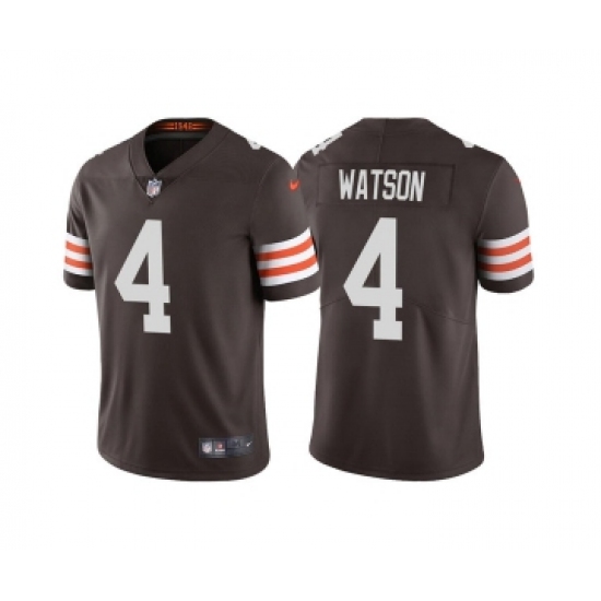 >Men's Cleveland Browns #4 Deshaun Watson Brown Vapor Untouchable Limited Stitched Jersey