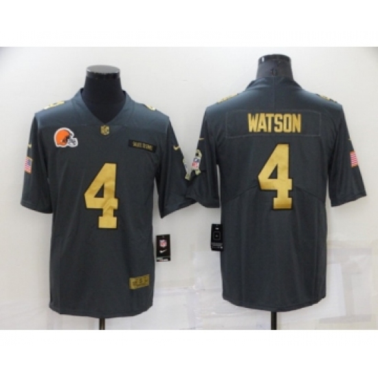 Men's Cleveland Browns #4 Deshaun Watson Grey Gold Salute To Service Limited Stitched Jersey