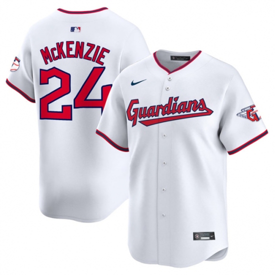 >Men's Cleveland Guardians #24 Triston McKenzie White Home Limited Stitched Baseball Jersey