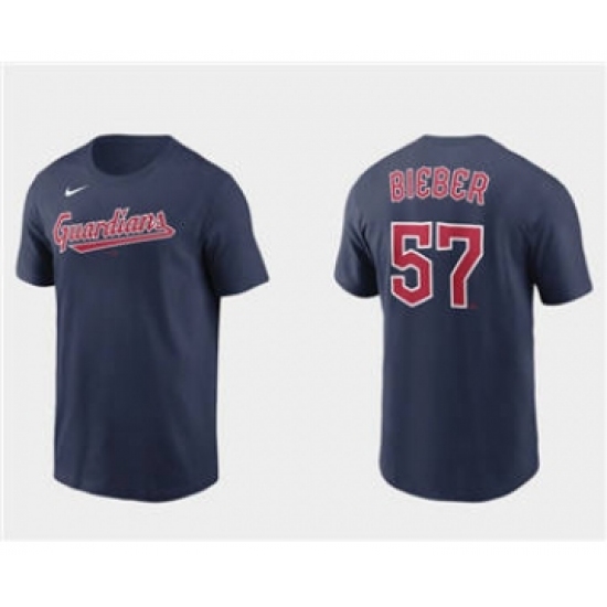 >Men's Cleveland Guardians #57 Shane Bieber Navy Name & Number Baseball T-Shirt