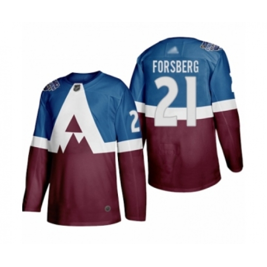 >Men's Colorado Avalanche #21 Peter Forsberg Authentic Burgundy Blue 2020 Stadium Series Hockey Jersey