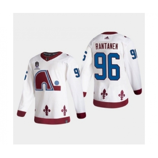 >Men's Colorado Avalanche #96 Mikko Rantanen 2022 White Stanley Cup Champions Patch Stitched Jersey