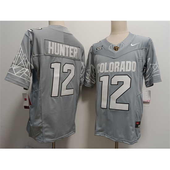 >Men's Colorado Buffaloes #12 Travis Hunter Grey With XII Patch 2024 F.U.S.E Stitched Football Jersey