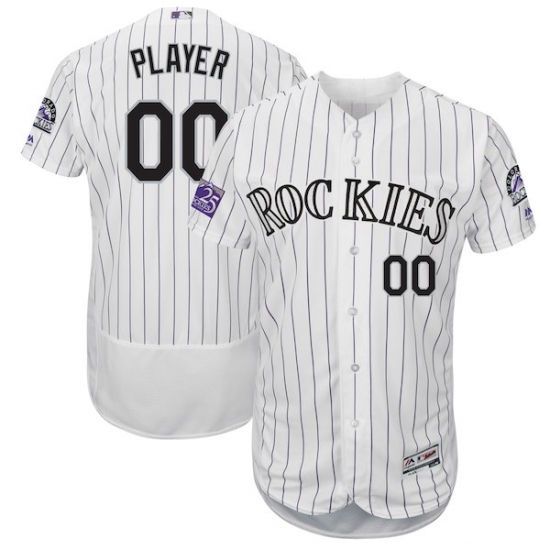 Men's Colorado Rockies Majestic White 25th Season Patch On-Field Flex Base Custom Jersey