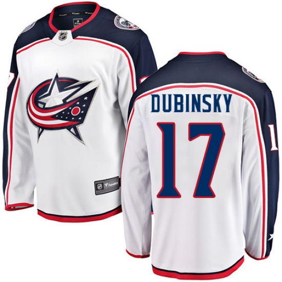 Home>NHL>Columbus Blue Jackets>Brandon Dubinsky>Men's Columbus Blue Jackets #17 Brandon Dubinsky Fanatics Branded White Away Breakaway NHL Jersey