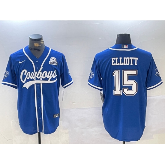 Men's Dallas Cowboys #15 Ezekiel Elliott Royal With Cool Base Stitched Baseball Jersey