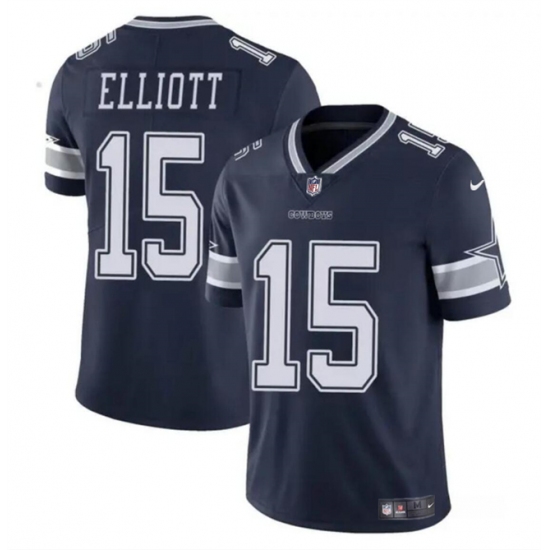 >Men's Dallas Cowboys #15 Ezekiel Elliott Navy Vapor Untouchable Limited Football Stitched Jersey