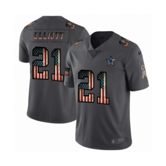 >Men's Dallas Cowboys #21 Ezekiel Elliott Limited Black USA Flag 2019 Salute To Service Football Jersey