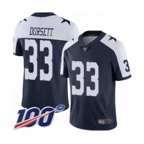 Men's Dallas Cowboys #33 Tony Dorsett Navy Blue Throwback Alternate Vapor Untouchable Limited Player 100th Season Football Jersey