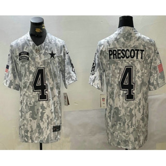 >Men's Dallas Cowboys #4 Dak Prescott Arctic Camo 2024 FUSE Salute to Service Limited Stitched Jersey