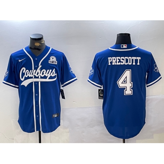 >Men's Dallas Cowboys #4 Dak Prescott Light Blue With 1960 Cool Base Stitched Baseball Jersey