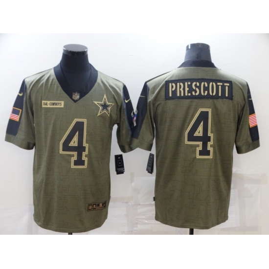 >Men's Dallas Cowboys #4 Dak Prescott Nike Olive 2021 Salute To Service Limited Player Jersey