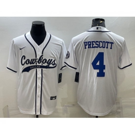 Men's Dallas Cowboys #4 Dak Prescott White With Patch Cool Base Stitched Baseball Jersey