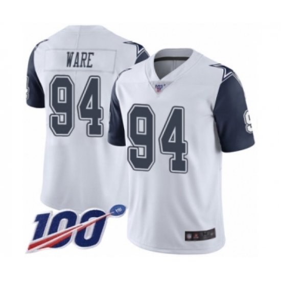 Men's Dallas Cowboys #94 DeMarcus Ware Limited White Rush Vapor Untouchable 100th Season Football Jersey