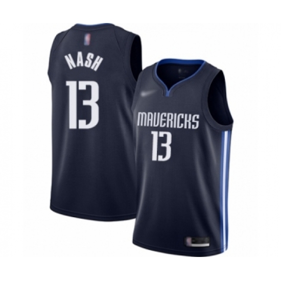 >Men's Dallas Mavericks #13 Steve Nash Authentic Navy Finished Basketball Jersey - Statement Edition