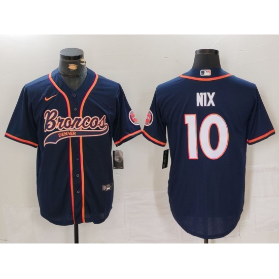 Men's Denver Broncos #10 Bo Nix Navy Cool Base Stitched Baseball Jersey